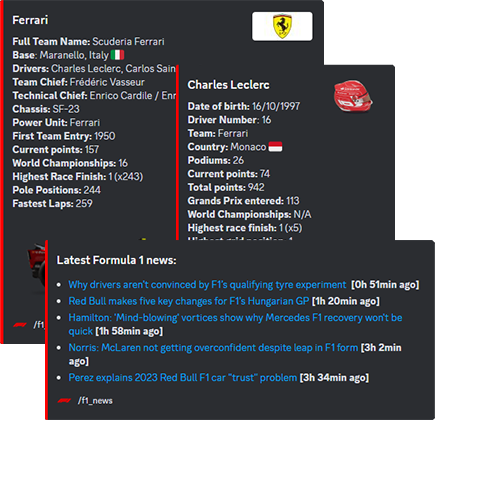 The bot offers commands to find out more about Formula 1, the teams and the drivers.