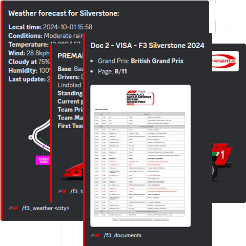 The bot offers commands to find out more about Formula 3, the teams and the drivers.